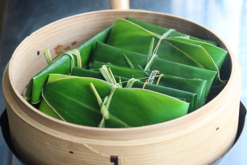 沖縄では、サンニン(月桃)の葉にお餅を包んで蒸す